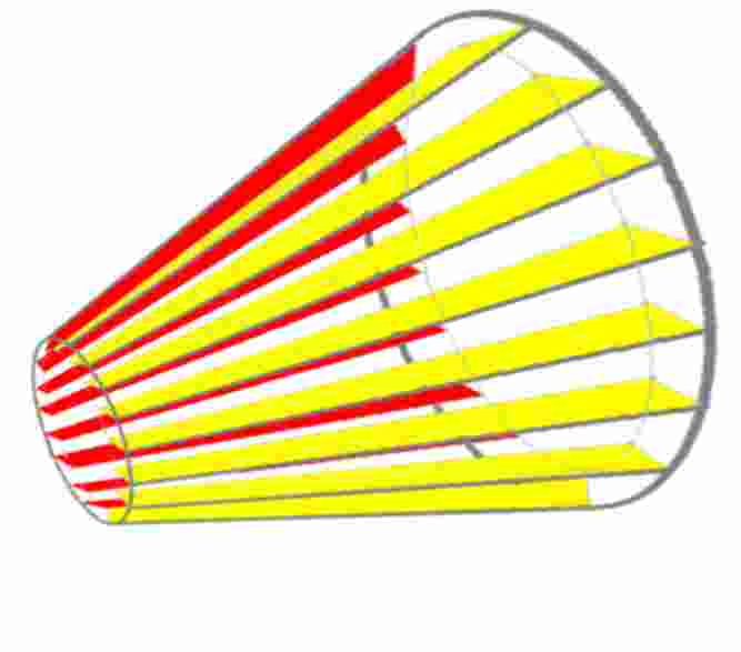 I had drawn the below cone to illustrate how such a thing could look. It should probably have a bit more of a warped shape but it gets the general idea accross.